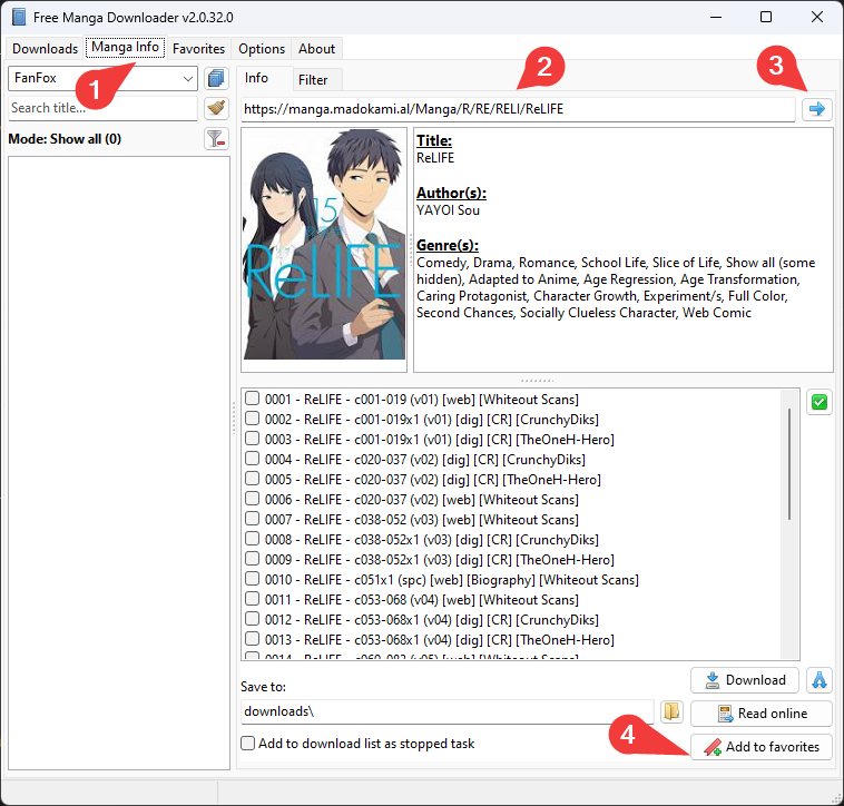 Options > Websites > Accountsand add your Madokami credentials. After that select Madokami and click apply. - Now go to Manga info and paste the URL in Input URL here and click
